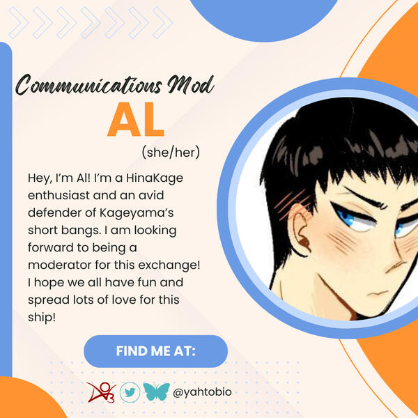 ......c) Because requests will be revealed for optional treats, please mark explicit prompts with “Content Warning: NSFW” so that minors and those uncomfortable with NSFW content can skip over them.5. By entering this event, you agree to be a friendly and supportive participant. This is a community event, so we encourage you to look through all the works and not just the one(s) gifted to you. Please engage as much as possible with other creations.6. You are REQUIRED to acknowledge your gift before the collection closes (two weeks after the creator reveals). This can be an Ao3 comment, a tweet, or a DM, and will be confirmed in an exit survey. Interactions with the event account graphics do not count, as your gifter is not guaranteed to see those. If your gifter reports that they never heard from you, you will not be allowed to participate in the KageHina Exchange next year.7. This is a KageHina event, but ship-bashing will not be tolerated. We want to facilitate an event that is enjoyable for all those who wish to participate, regardless of ship preferences. If you’re unsure whether including a secondary ship in your work is allowed or in line with the giftee’s preferences, refer to Point (3).8. This event will contain a wide variety of works which may contain manga spoilers. If you’d like to avoid those, beware the tags and include that information in your sign-up form so all the mods, as well as your gifter, are aware of it.9 AI generated artwork and writing will not be permitted in this exchange at any point.